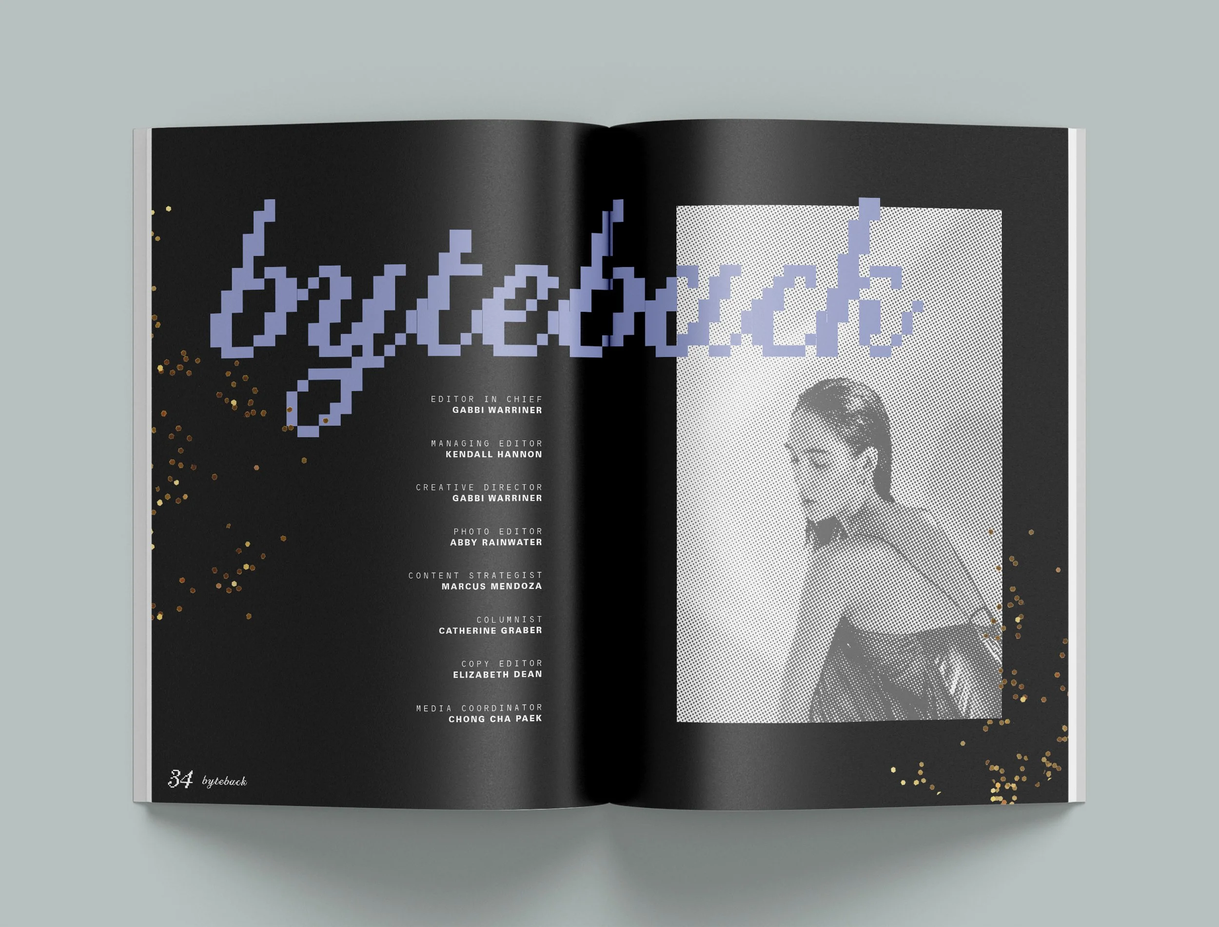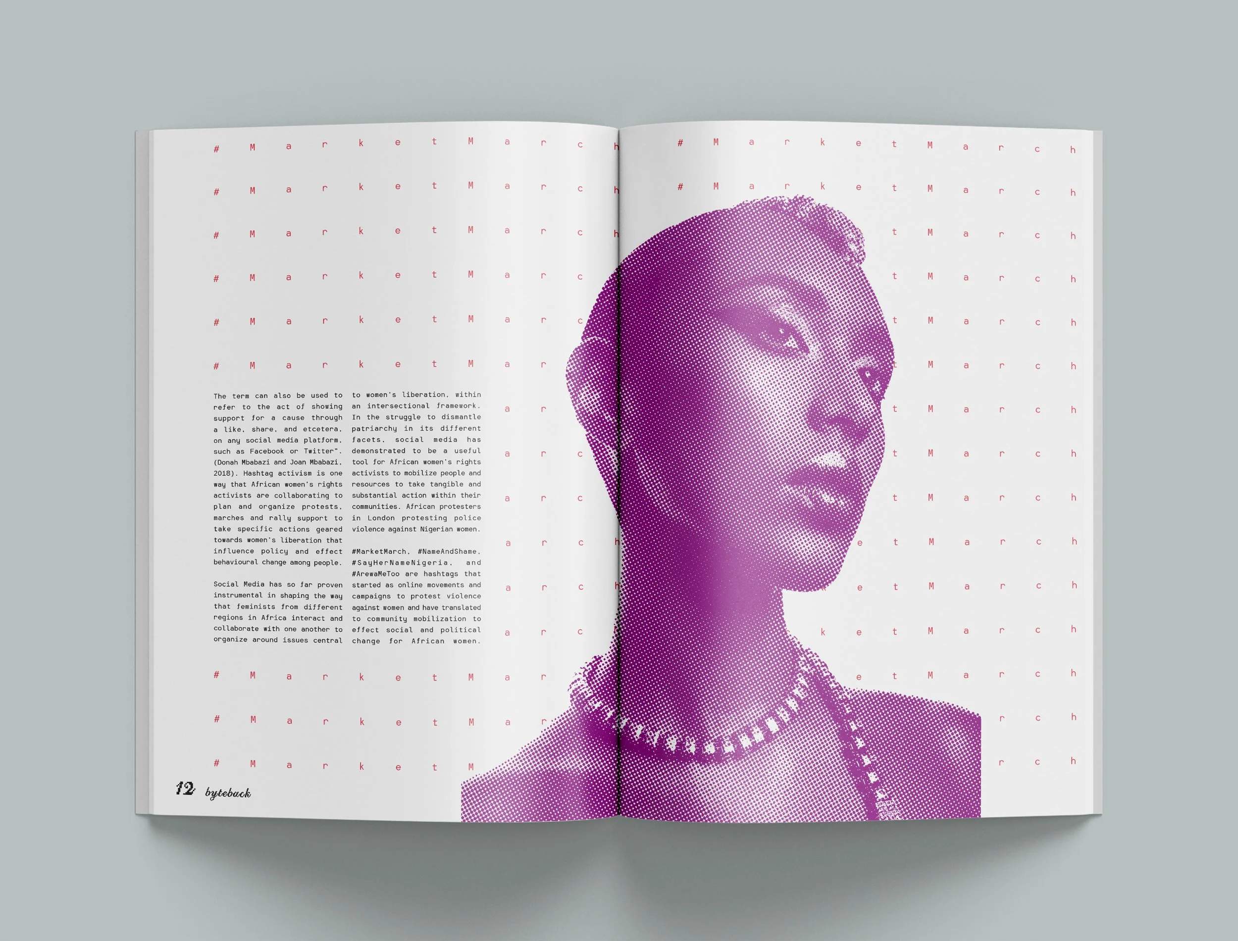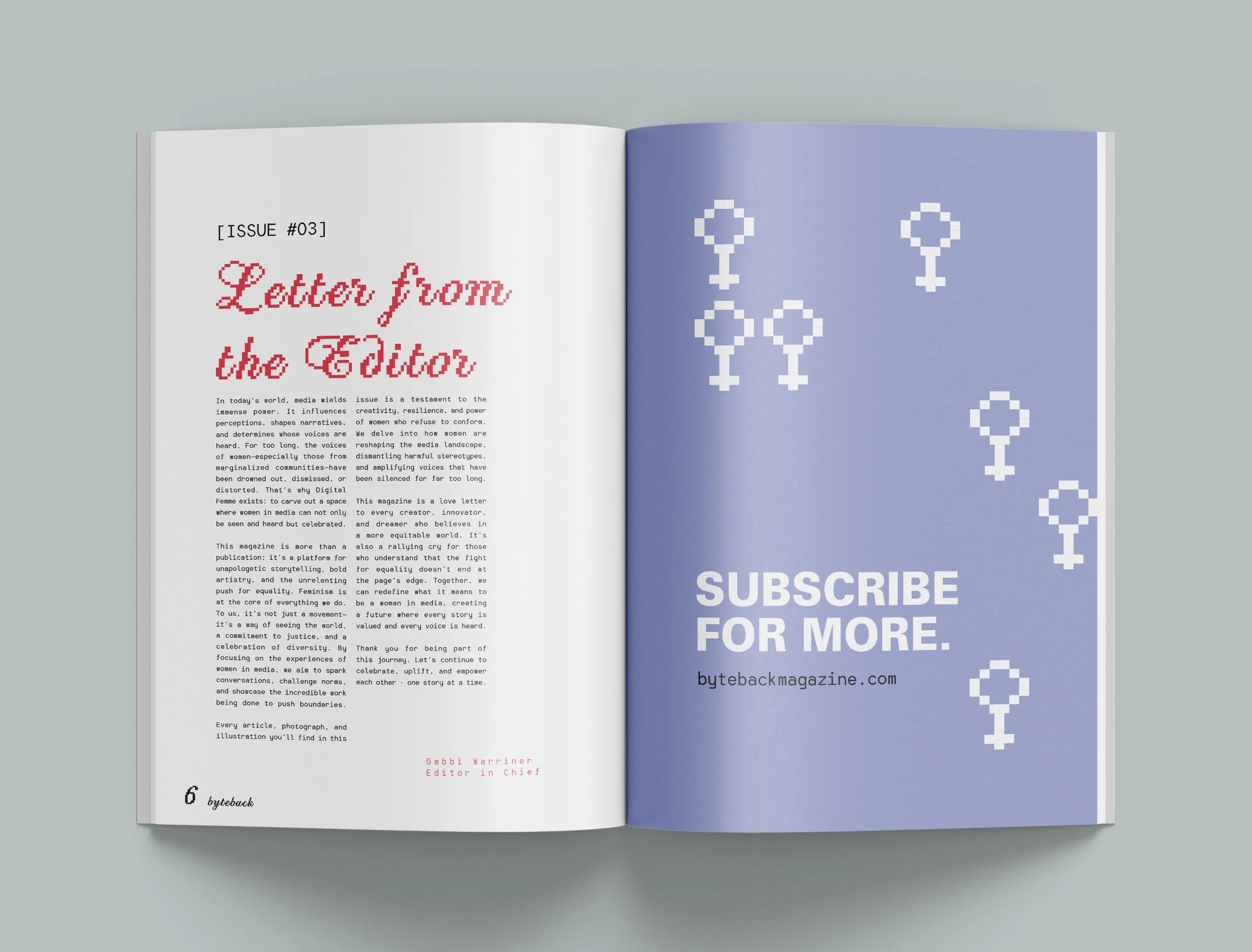 ByteBack is a fictional feminist magazine exploring women’s voices in the digital age, spotlighting diverse artists, activists, and pop culture.