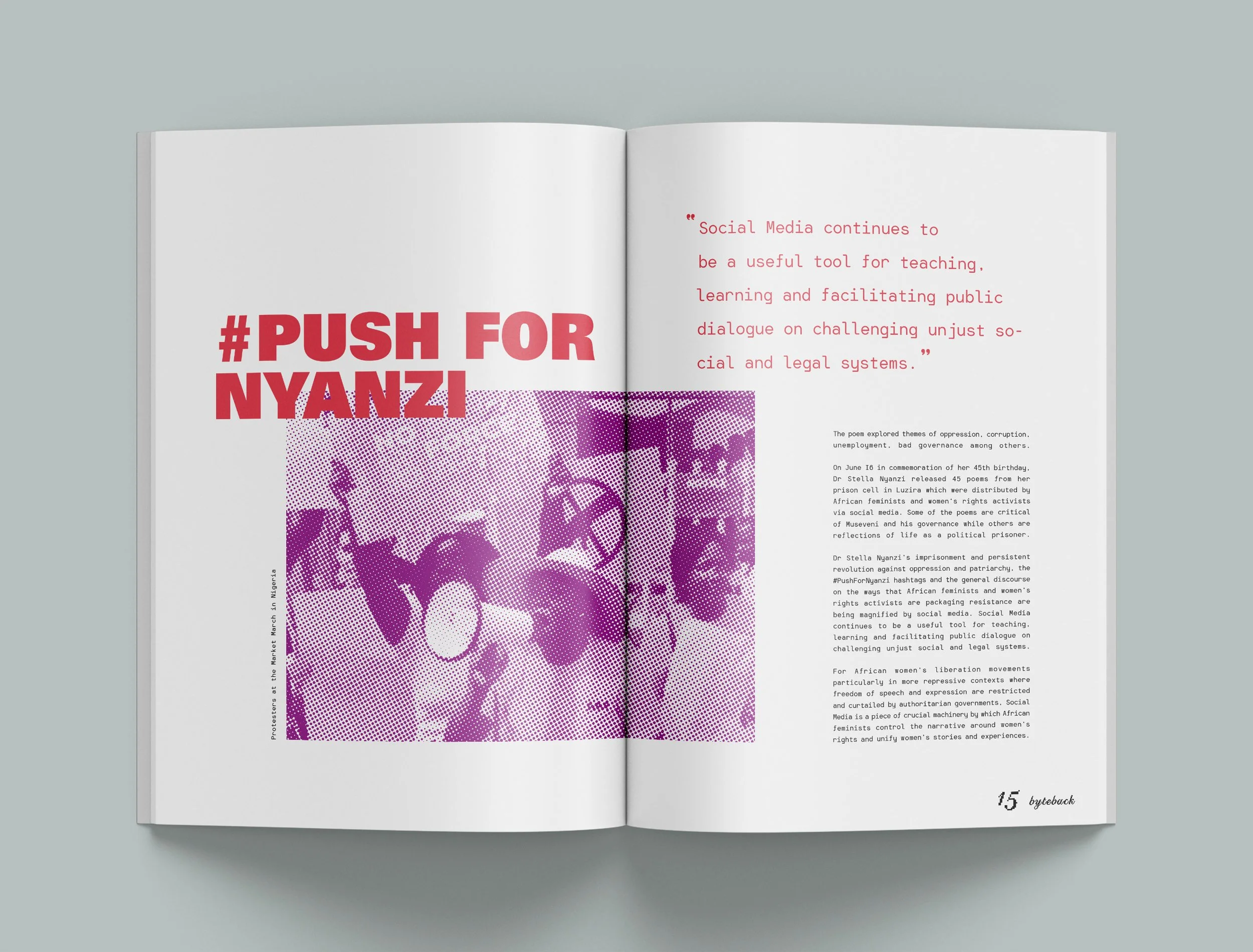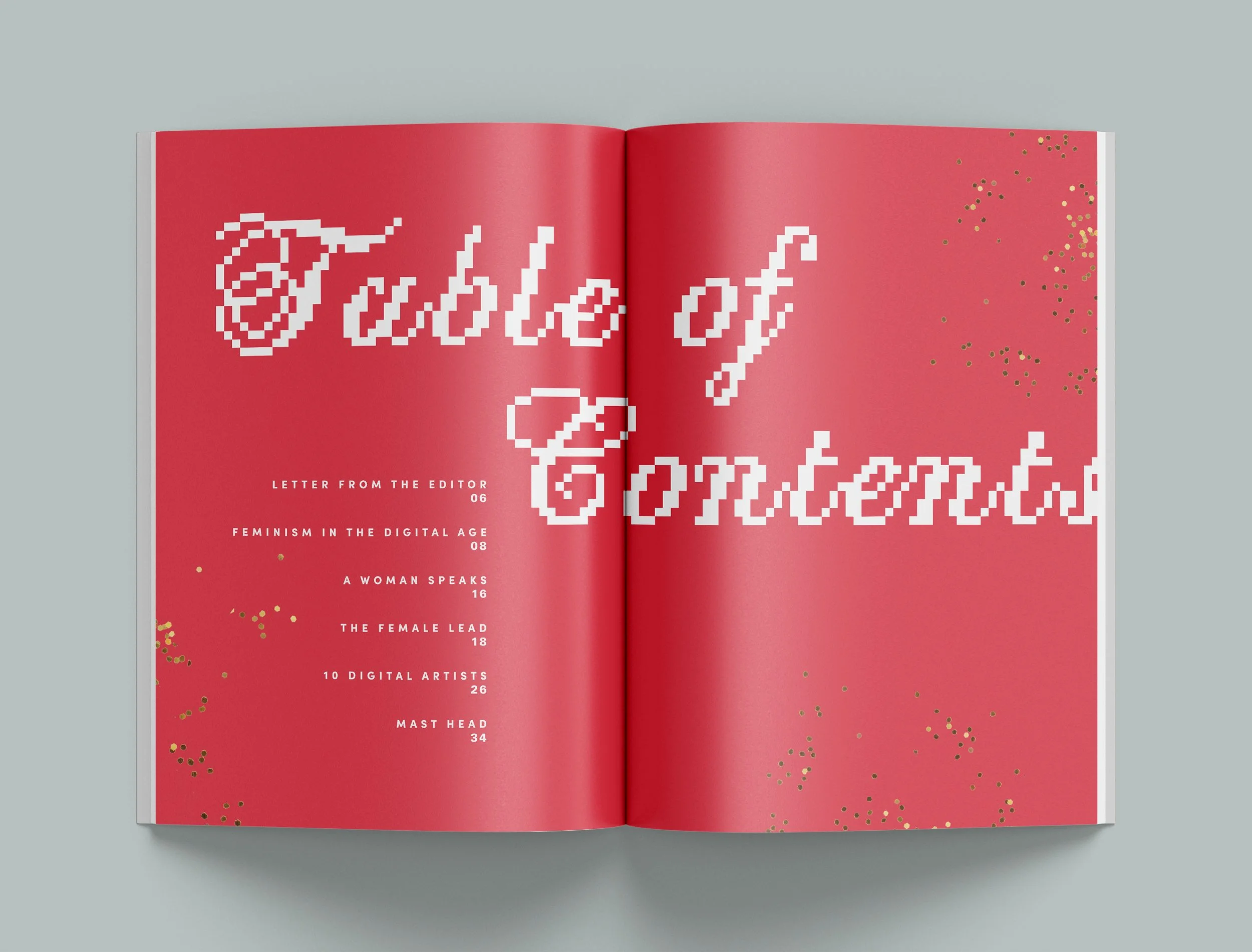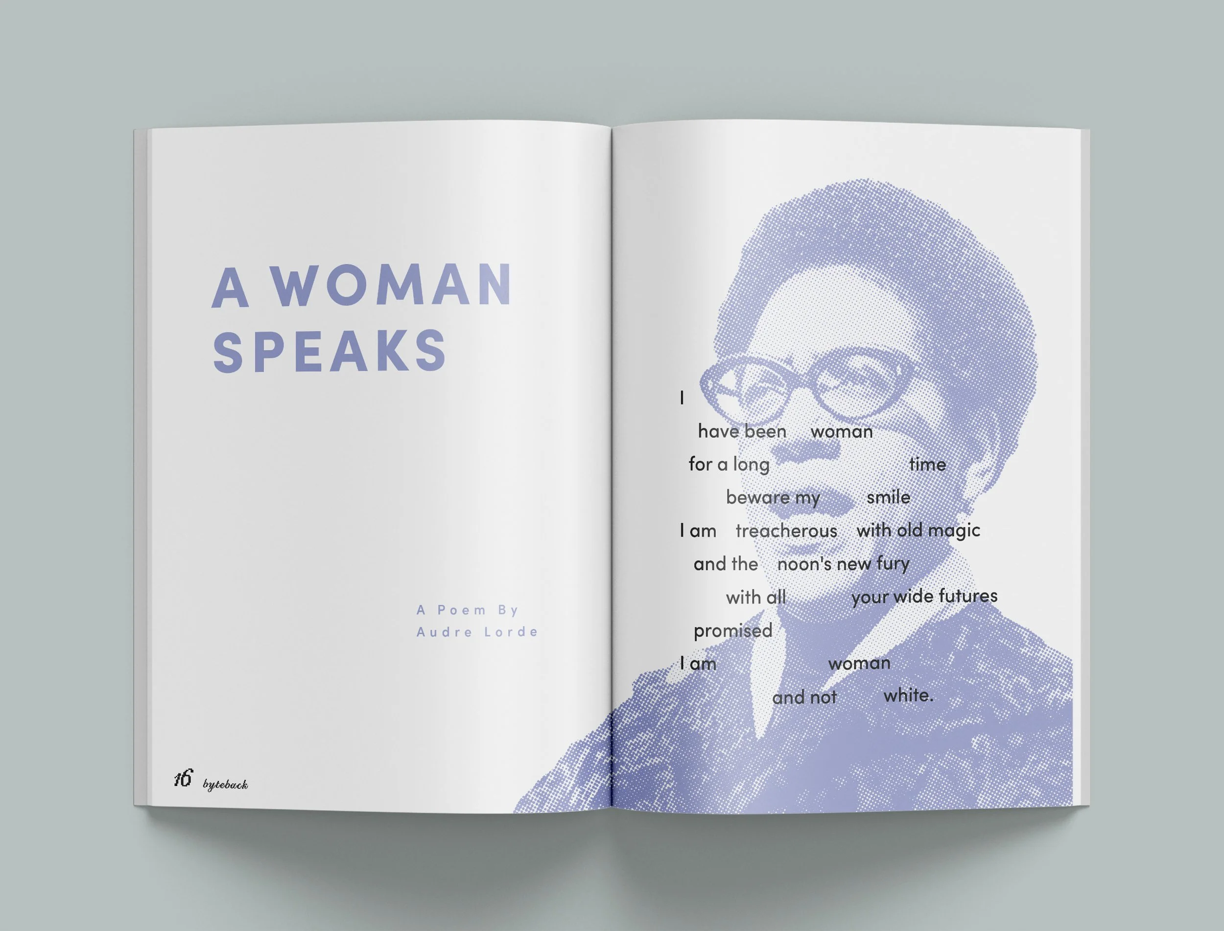 ByteBack is a fictional feminist magazine exploring women’s voices in the digital age, spotlighting diverse artists, activists, and pop culture.