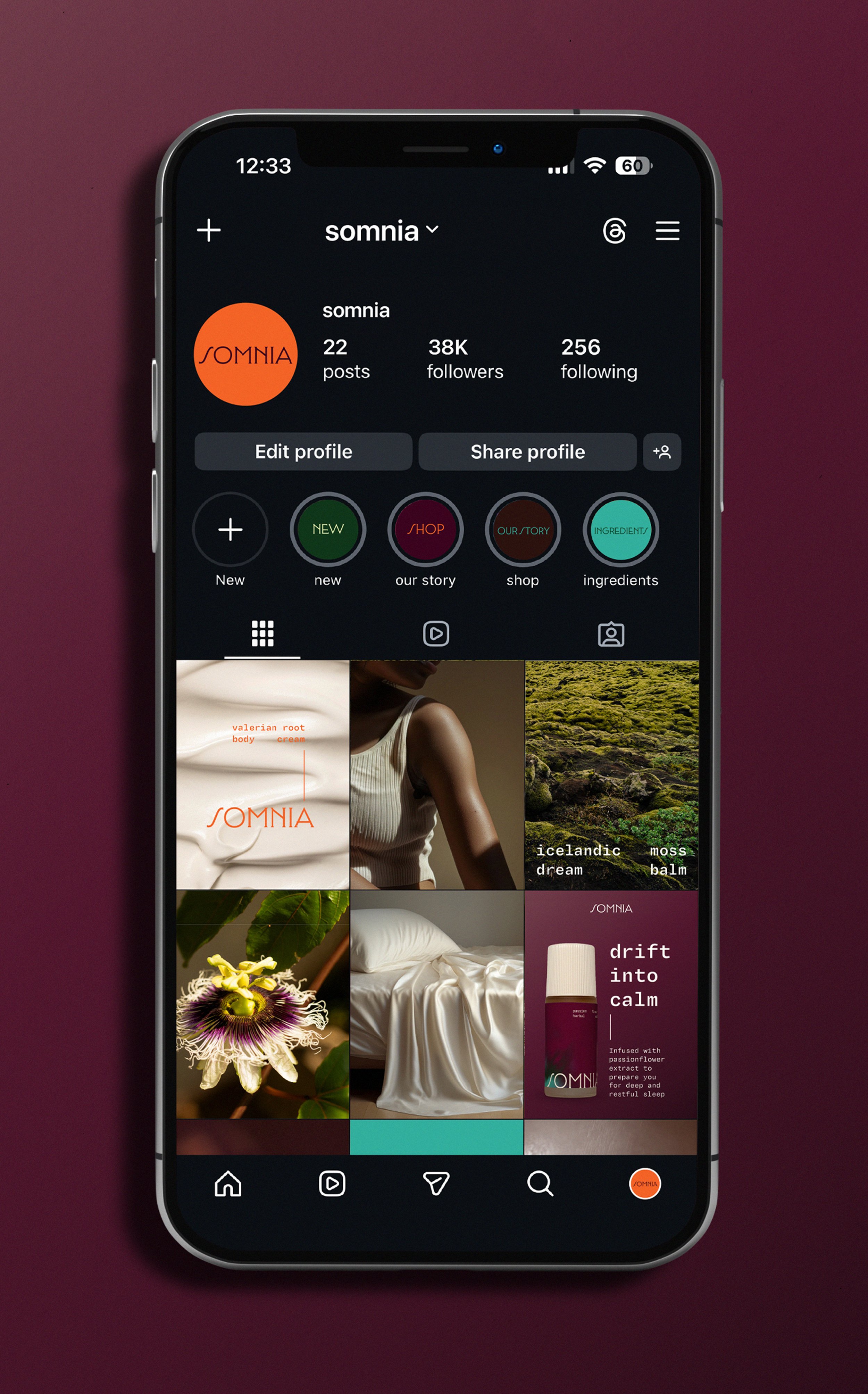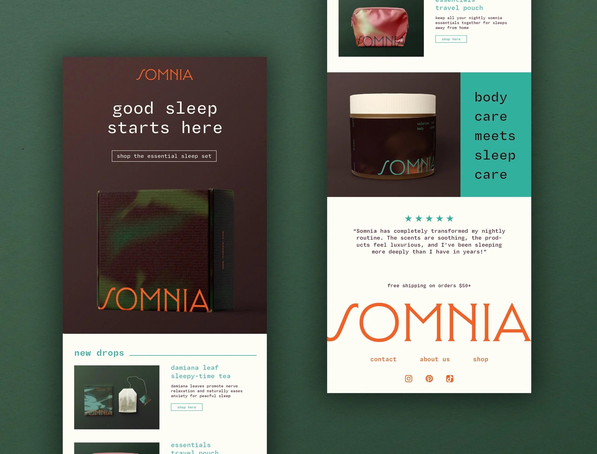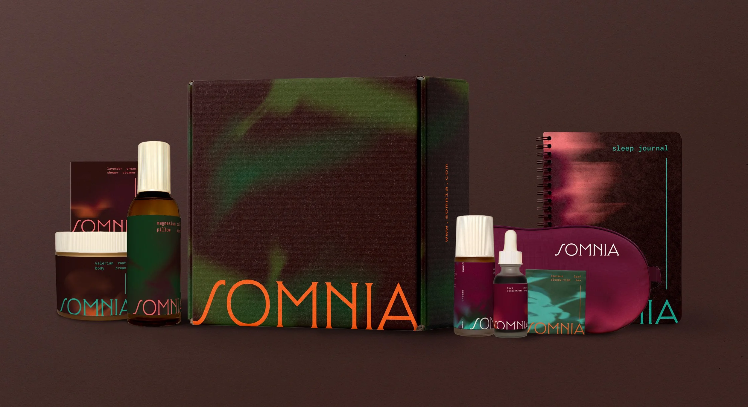 Somnia is a fictional holistic sleep brand centered around organic sleep aids for a calming nightly ritual.